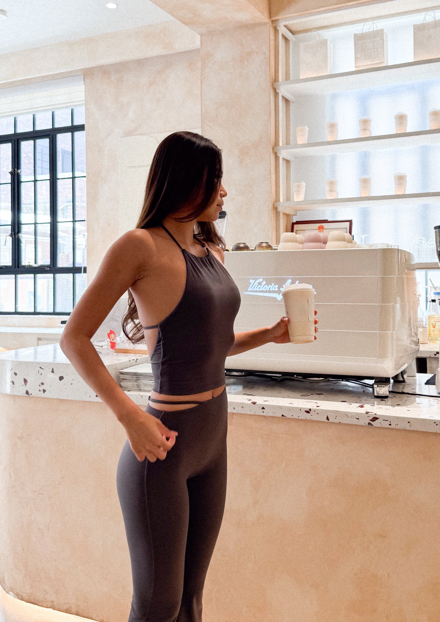 Because this is one of those pieces that works everywhere. The halter cut elevates it beyond a basic sports bra, while the timeless black makes it endlessly easy to style — workout or not.
